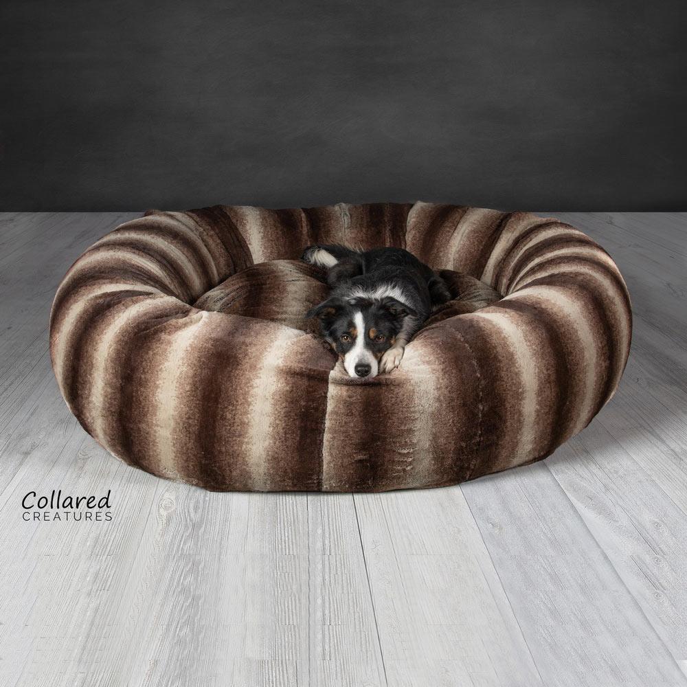 The Collared Creatures Luxury Deluxe Donut Bed Is a Collared Creatures exclusive design, it looks great when paired with our Luxury double quilted faux fur Blanket.