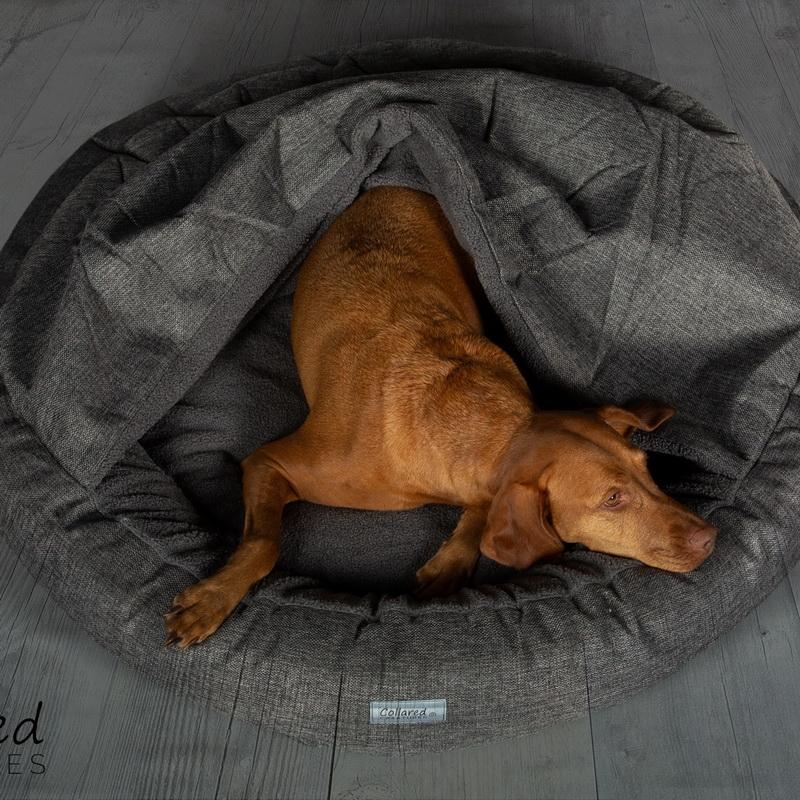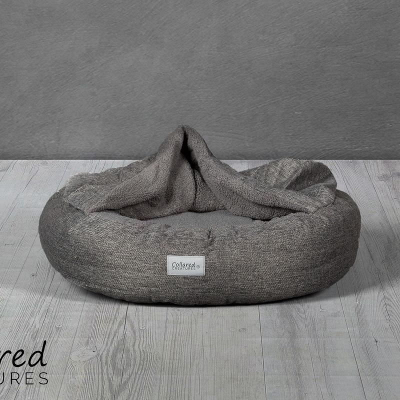 The Collared Creatures Classic Cocoon bed In Grey Is great for snuggling and super pleasing on the eye.
