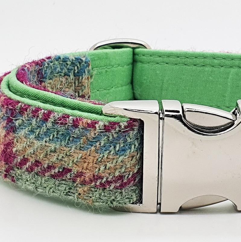 - This Collared Creatures Beautiful Harris Tweed Dog Collar is made from 100% Wool. Harris Tweed is a cloth that is made from pure virgin wool dyed and spun in the Outer Hebrides of Scotland.